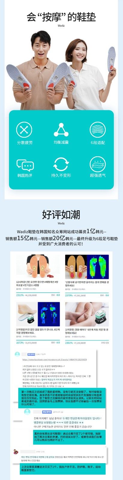 自动指压足弓垫,韩国备受好评的众筹鞋垫
