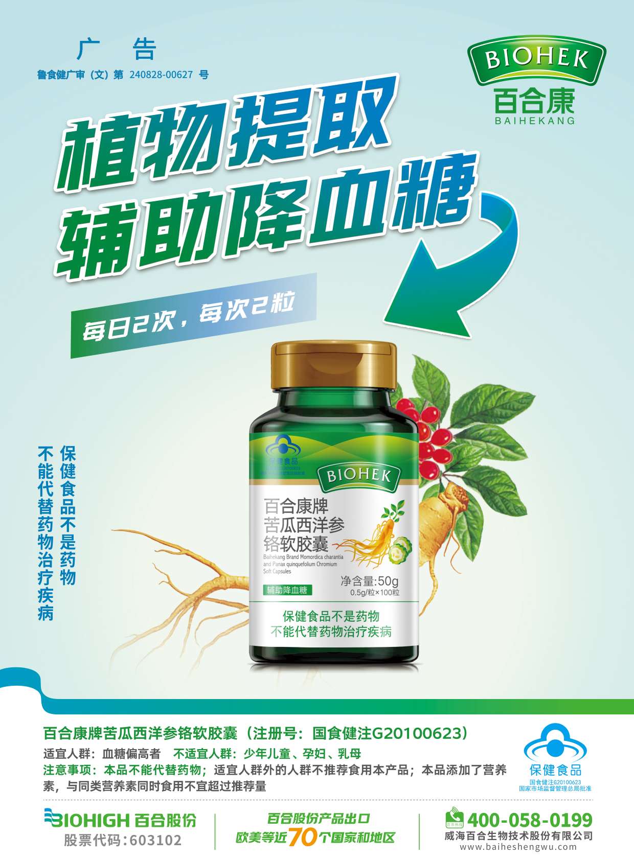 规格:500mg/粒 特点: 辅助降血糖 【原料】西洋参提取物(经辐照)