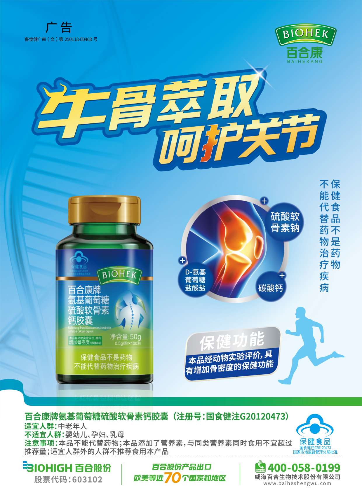 百合康牌氨基葡萄糖硫酸软骨素钙胶囊