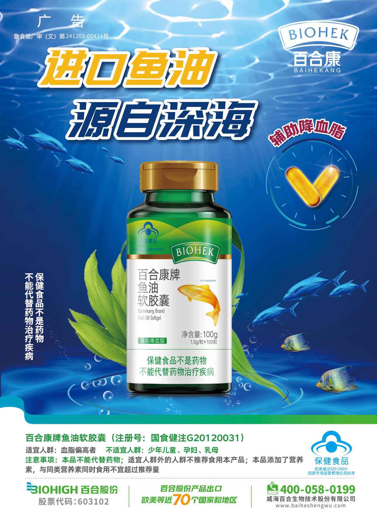 规格:1g/粒 特点: 辅助降血脂 【原料】鱼油 【辅料】维