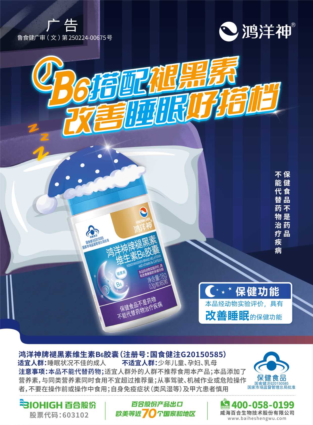 鸿洋神牌褪黑素维生素B6胶囊