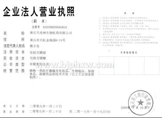 鄂(黄)食药监械(准)字2008第1640027号