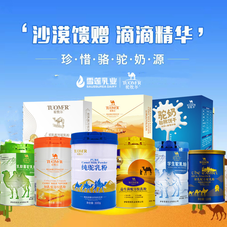 驼牧尔是伊犁雪莲乳业旗下自营驼奶。伊犁雪莲乳业有限公司成立于2005年,是一家集畜牧养殖、乳制品研发、生产经营于一体的全产业链现代化乳品企业。驼牧尔系列产品主要包括纯驼乳粉、初乳驼乳粉、益生菌驼乳粉、乳酸菌驼乳粉、学生驼乳粉、富硒高钙驼乳粉等。雪莲乳业所处新疆伊犁农产品加工基地,现有7大自有万亩牧场,共计210000 余亩,双峰骆驼7018峰,并拥有富蕴可可托海、伊宁县托乎拉苏、那拉提杏花沟、霍克图开沙漠、甘家湖梭梭林等5大牧场骆驼养殖基地与20多家骆驼养殖合作社。